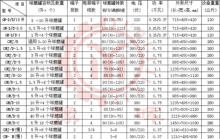 行星式球磨機參數(shù)